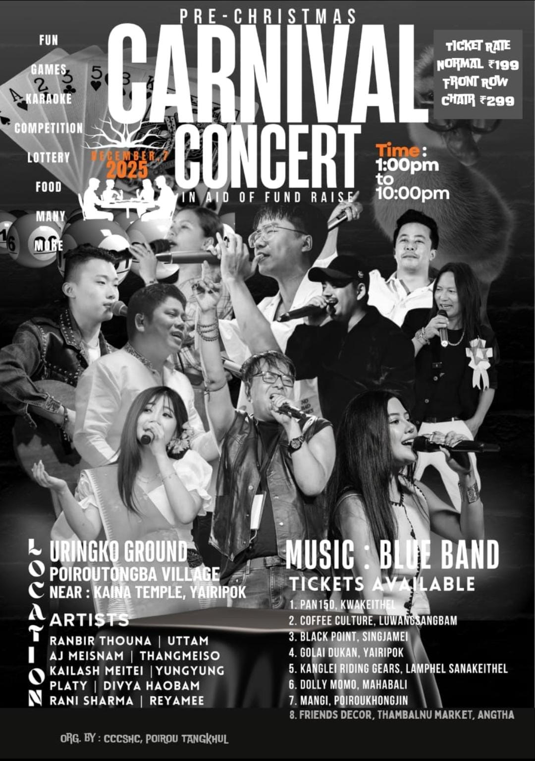Games, lottery, competition, karaoke, food, music (Yungyung, reyamee, thangmeiso, ranbir thouna, uttam, rani sharma, platy laithangbam, divya haobam, kailash meitei) (Ryan keishing) Kumhei Map